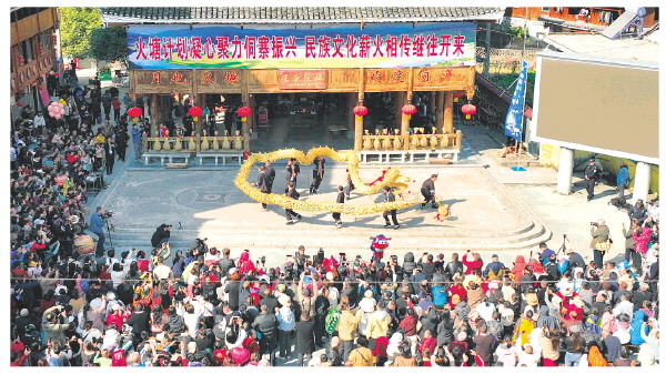 开幕式后,“萨玛圣火传火塘”燃情上演。寨佬庄重护送圣火至各火塘,寓意文化传承不息。各火塘前,岩坪调宛转悠扬,多耶舞豪迈壮观,民俗风情与美味小吃相得益彰。游客纷纷驻足沉醉。