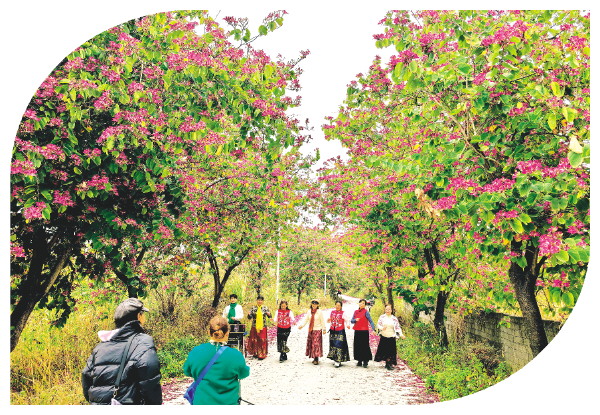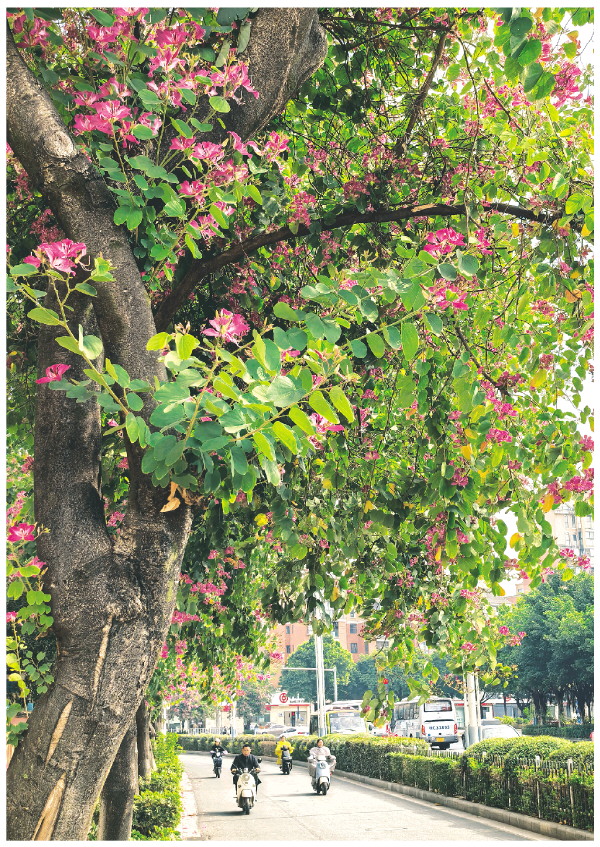 中隐路上种植的红花羊蹄甲惊艳绽放。李腾钊 摄