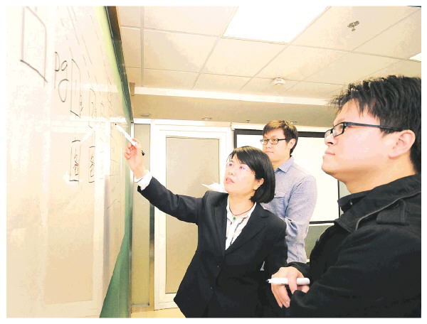 单杏花与团队在铁科院实验室讨论常旅客积分系统的技术方案(资料照片)。新华社发(翁湦元摄)