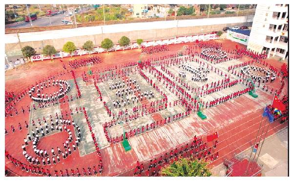 灵川县城关第三小学阳光体育跑操活动现场