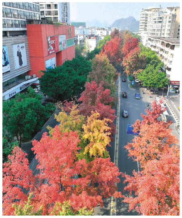 近期,我市持续低温,市区10多个品种数万株色叶树的叶子逐渐变色,层林尽染、叠彩流金,在蓝天白云的映衬下格外美丽,把冬日里的桂林城装扮得五彩斑斓。一年一度的“醉美”赏叶季又到了。