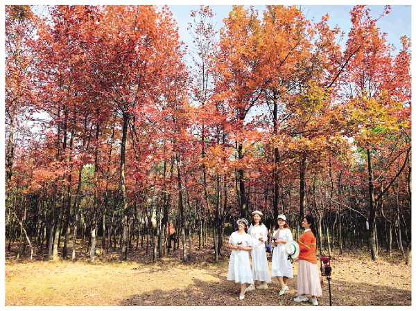 桂磨路枫香林已成为新的赏枫叶网红打卡地。