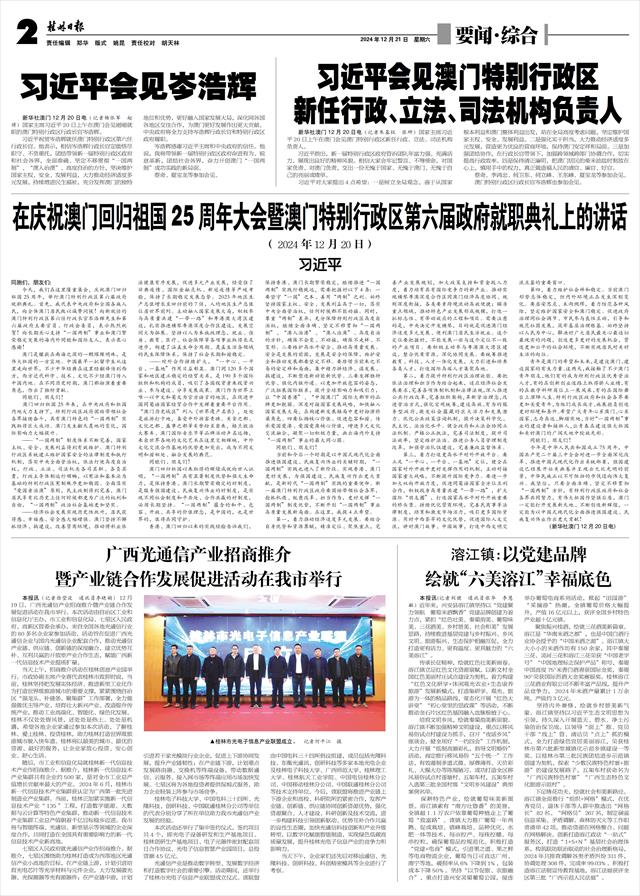 在庆祝澳门回归祖国25周年大会暨澳门特别行政区第六届政府就职典礼上的讲话 (2024年12月20日)