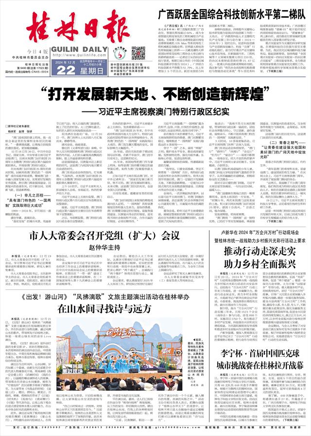 本报讯(记者唐健扬)12月21日,《出发!游山河》桂林站“风拂漓歌”文旅主题演出在桂海晴岚景区举办,并在抖音进行全程直播。通过风拂山水的歌声,带领网友开启桂林之旅,体验一场青山绿水间的音乐Live演出。