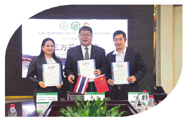 11月25日,市旅职中专、靖西市职业技术学校、泰国乌隆他尼职业学院联合举行中泰交流合作项目签约仪式。