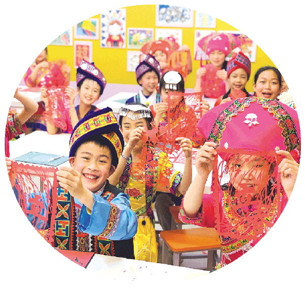 桂林市向阳小学开展“广西三月三”民族团结剪纸活动。