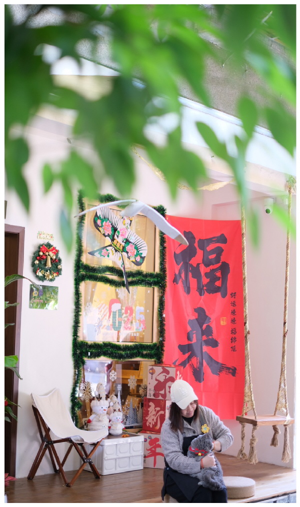 12月28日,距离2025年仅剩下三天。蒋明的咖啡店里一片欢声笑语。好友们一起动手做面条,热气腾腾的房间里弥漫着浓郁的咖啡香。蒋明还颇有仪式感地在店门口挂上了喜庆的纸鸢和大红色的布帘,上面两个大字“福来”,寄托着她和家人对来年美好的祈盼。