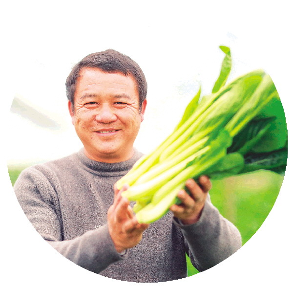 灌阳县文市镇月岭村的蔬菜种植大户唐冬初在展示新采摘的蔬菜宝岛脆。