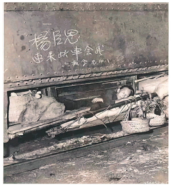 图④:湘桂铁路上的火车已然成了难民营。 (本版图片均由秀峰区档案馆提供)