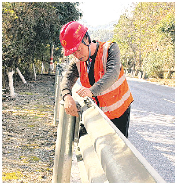 ▲邓美毅在国道321龙胜至瓢里路段检查护栏。