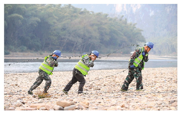 漓江通信线缆、杆塔迁建改造工程覆盖广泛,北起磨盘山码头,南至阳朔福利漓江大桥,全长约70公里。工程累计拆除跨江通信线缆12处、通信杆塔整治34个,迁改线缆62条,总长约500公里。同时,为了满足新的通信需求,工程还新布设杆路80余公里,新建兴坪冷水至马山漓江下穿管道工程1处。