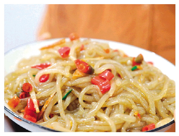 ▲酸辣椒炒红薯粉,是不少灌阳百姓的“心头好”。