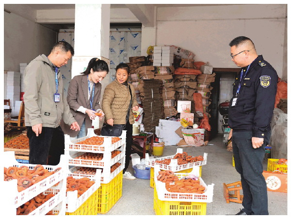 恭城瑶族自治县纪委监委聚焦履行职责不尽力、表态多调门高、行动少落实差、不担当不作为等问题,加强“室组地”联动,深入一线,对市场监管、发展改革、工信、农业农村等职能部门履职情况开展监督检查,大力整治损害营商环境突出问题。图为近日该县纪检监察干部联合市场监督管理局工作人员到恭城柿饼交易市场收集问题,打通产销衔接“最后一公里”。费柳洁 摄