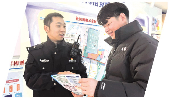 ▲唐卓琰在东西巷警务网格党群服务站对市民进行反诈宣传。(市公安局供图)