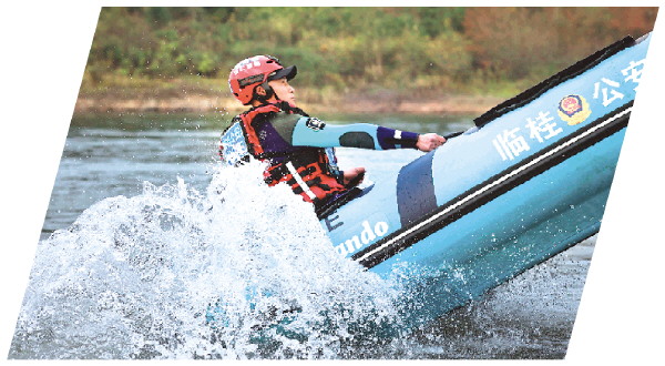 全雨希在进行驾驶舟艇训练。(市公安局供图)