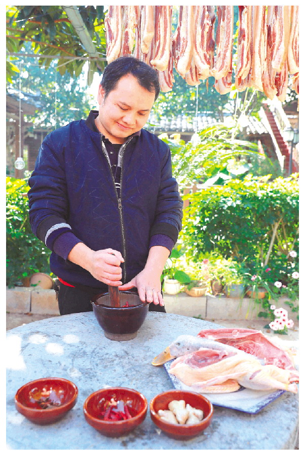 看着客人们吃得开心,张立也满脸笑容。他告诉记者,“80后”的他在小时候很少能吃到抛鸭。彼时,对于当时大多普通农家而言,吃抛鸭是一件相对奢侈的事情,一般只有在中秋佳节或春节才能吃到一回。从小懂事的他,经常帮父母做饭菜,不知不觉中练就了一手不错的厨艺。这两年,他在两江镇的一家农家乐当大厨,又在前辈谢惠恩大姐的指导下,掌握了临桂抛鸭的烹饪精髓。从此,年幼时很难吃到的美味,成了自己每天必做的佳肴,还得到很多食客的赞许。生活因这道地道美食,又添了更多满足和欢喜。