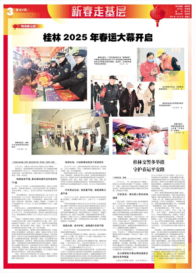 服务,一路归途一路暖。答好春运“考卷”,贵在用心用情。想旅客之所想,急旅客之所急,以最大能力、最优服务,让春运出行满载温情。公安交管全警动员,以最佳状态投入春运交通安保,确保出警更快,减少拥堵滞留;铁路部门改进旅客在途服务、加大票价优惠力度;民航部门重点关注老年人、残疾人、儿童、首乘旅客等群体需求,让出行“有碍”变“有爱”。