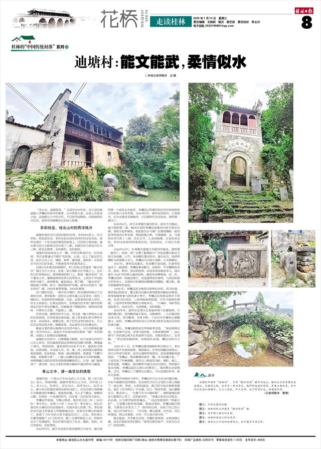 “佳山水,迪塘颇具。”这是约400年前,灵川灵田镇迪塘人李膺品对家乡的赞誉。山水秀美之地,必是人杰地灵之地。这座群山之中的古村,不仅有华丽精致、风格独特的古民居,更有先贤慷慨悲壮的动人故事。