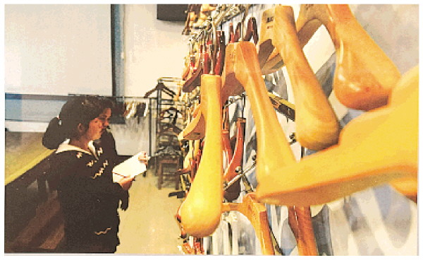 图⑦:2015年3月14日,在荔浦毛家电商楼,两名女员工在记录即将出口日本的衣架样式和数量。新华社记者张爱林 摄