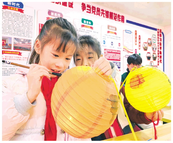 小朋友们在社区制作灯笼迎新春。 王亚东 摄