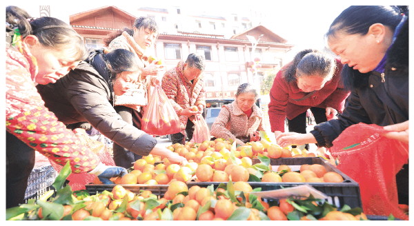 ▲阿嫂们在挑选新鲜的柑子。 莫京霖 摄