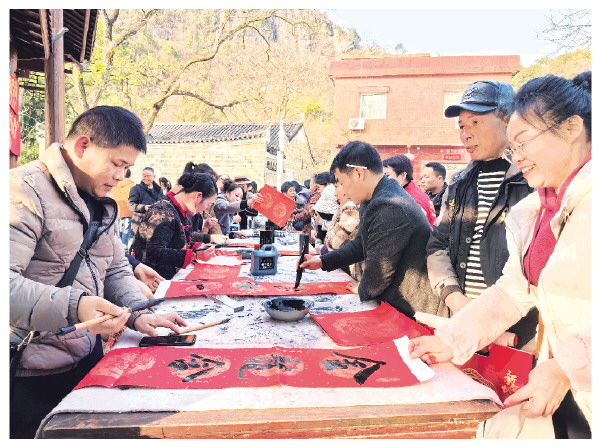 活动现场,免费写春联、送春联活动,深受村民和游客喜爱。 记者秦丽云 摄