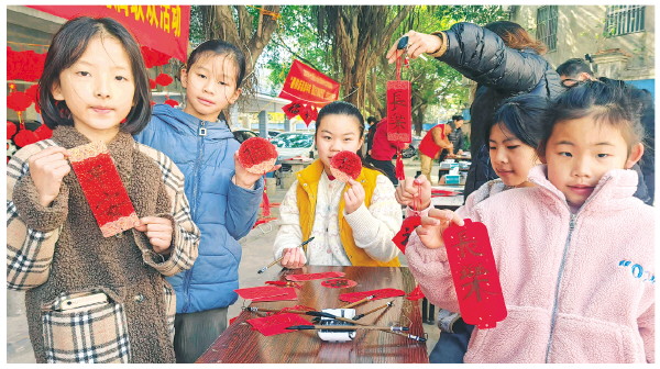 红红的纸,浓浓的墨,满满的年味。1月16日,七星区六合社区开展“墨韵新春,福送万家”活动。书法爱好者现场为辖区居民义务写春联,孩子们也写下各种吉祥祝福语送给居民。 记者张苑 摄