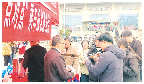 在就业社保政策咨询点,工作人员热情细致,讲解政策、指导职业规划,还手把手教求职者使用指尖投岗服务,助力其高效求职。求职招聘区人潮涌动,企业代表与求职者面对面,深入介绍岗位详情等关键信息,众多求职者当场填写简历,开启家乡就业新征程。“点对点”乘车报名点前,农民工熟练扫码填写信息,为节后返岗提前规划。现场还为返乡人员准备了含春联、“福”字、雪饼及就业政策资料的“暖心大礼包”,传递家乡关怀。