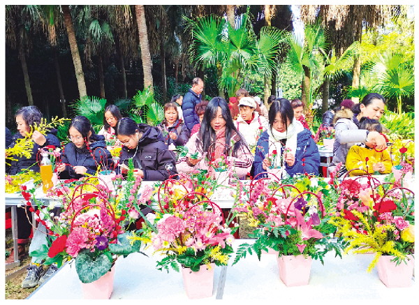 同时,公园还举办了插花活动,共有20组家庭报名参加。公园一位工作人员首先向市民、游客介绍了花艺基础知识,并现场示范多种造型的插花。公园还提供了一批鲜花供大家学习插花技巧。芦笛小学6年级学生曹棂歆在完成插花制作后说:“这个插花活动很有意思,我不仅学习了插花技巧,收获了乐趣,还感受到了不同插花美学背后的文化内涵。”