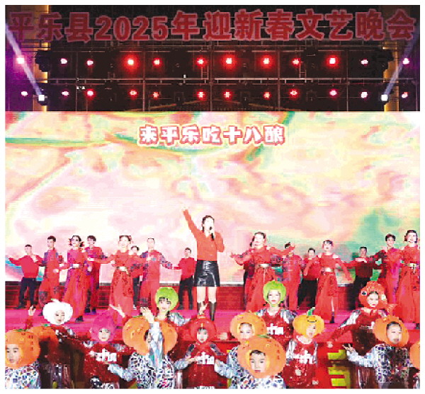 ▲1月24日,平乐县2025年迎春文艺晚会在县城举行,全县各行各业各领域代表欢聚一堂,将过去一年工作成效以舞台汇报表演形式向观众呈现。 苏桂 摄