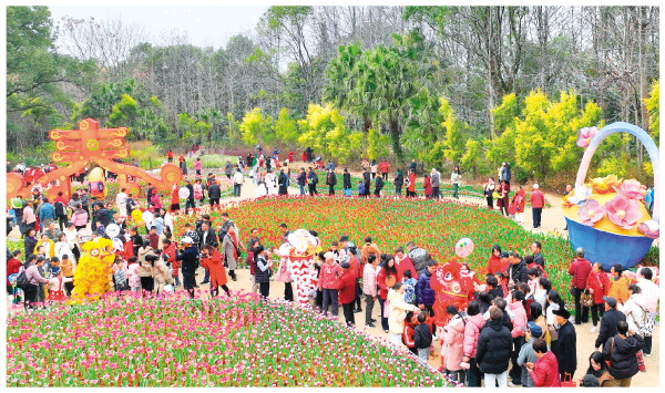 当天,公园还举办了郁金香科普展、郁金香义卖、“迎春送福送财”、桂林插花、桂林龙船民俗等丰富多彩的活动。据该公园管理处统计,1月29日,公园累计接待市民、游客数量达5.3万人次。