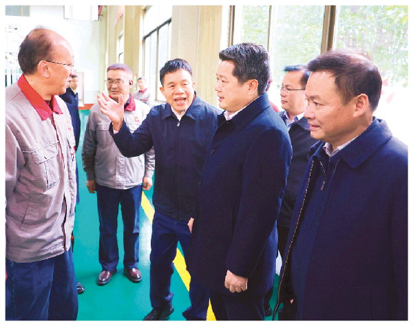 2月5日,市委书记、市长李楚率队深入企业生产一线,看望慰问企业干部职工。图为李楚在桂林福达股份有限公司看望慰问企业干部职工。记者李凯 摄