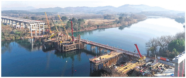 2月2日,自治区重大项目全灌高速公路湘江特大桥建设施工现场机声隆隆、车来车往,建设者们顶着寒风,争分夺秒、昼夜不停、干劲“满格”地对24、25、26、27号桥墩紧张施工。