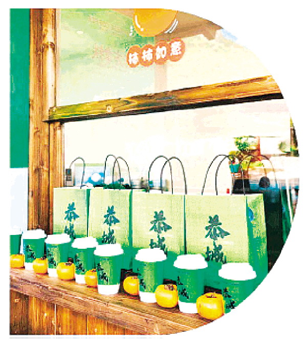 图④:奶茶铺档口前展示恭城油茶奶茶独有的包装。