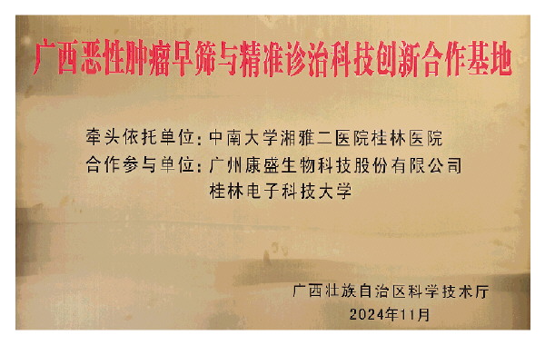 广西恶性肿瘤早筛与精准诊治科技创新合作基地。