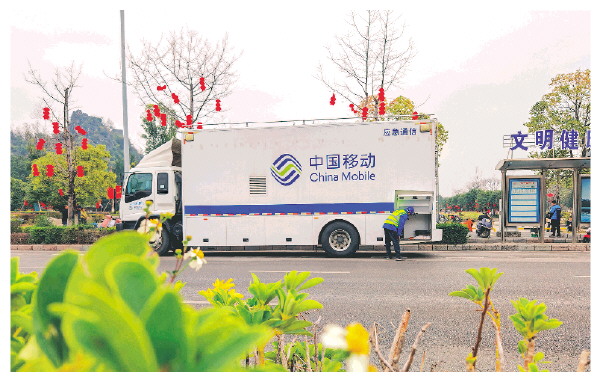 桂林移动应急通信车在山水公园保障。 李静 摄