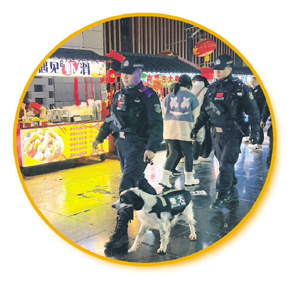 1月29日,大年初一的夜晚,在桂林某景区附近,正带着警犬巡逻的特警队员遇到一个小女孩。女孩没有说话,主动靠近队员和警犬,眼中闪烁着好奇与喜悦。