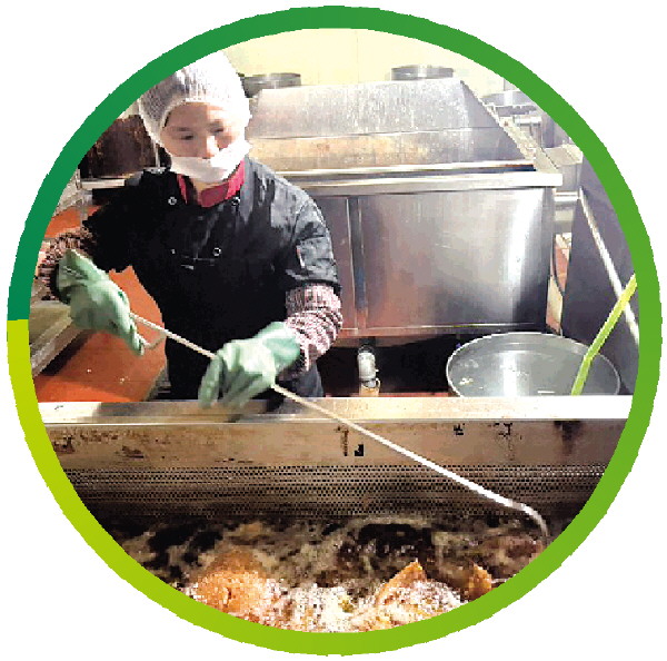 图④:生产车间里,工作人员正在炸锅烧。 记者蒋璇 摄