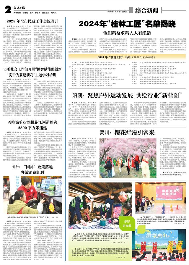 过去一年,全市民政系统在保基本、兜底线、暖民心、防风险、促发展上持续发力,推动民政事业取得新的明显成效。居家社区养老服务更舒心。完成2450张家庭养老床位建设,为6422名困难老人提供上门服务,服务22.3万人次。73个乡镇建有综合功能养老服务机构,覆盖率54.5%。35个养老助餐点完成建设。社会救助智能认定更精准。桂林市入选全国救助管理区域性中心试点单位。乡村“有名”更“扬名”。制作“智慧化”二维码地名标志牌,为群众提供地名查询定位、缴纳水费医保、办理民政救助等便民服务;梳理灵渠历史文化等4条旅游精品线路,推出龙脊村“开耕节”等民俗旅游品牌,推进地名应用转化等。