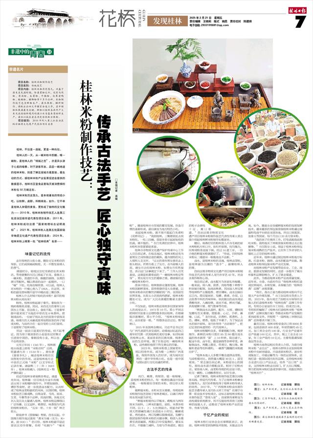 桂林米粉历史悠久,是本地著名的传统小吃,以粉鲜、卤醇、料精闻名。如今,它不单是桂林人钟爱的美食,更形成了独特的文化魅力——2010年,桂林米粉制作技艺入选第三批自治区级非遗代表性项目名录;2011年,桂林米粉成功注册“国家地理标志证明商标”;2021年,桂林米粉入选第五批国家级非物质文化遗产代表性项目名录;2024年,桂林米粉上榜第一批“桂林经典”名录……