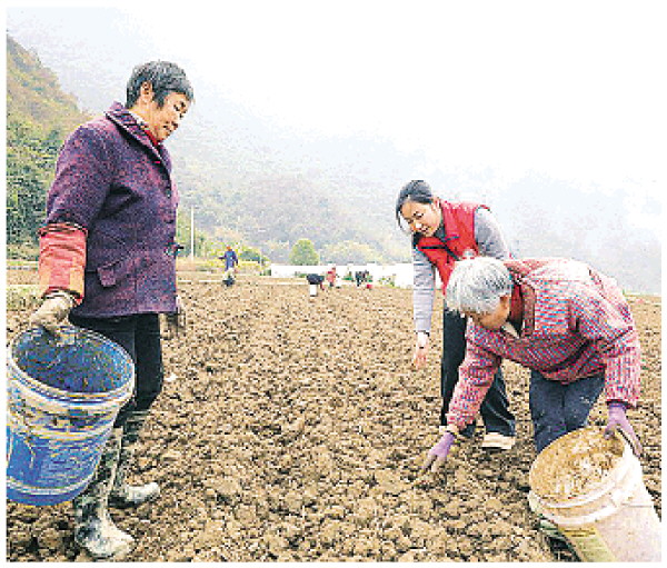 在相邻的杜莫镇金鸡村邓村屯,广阔的田野上,土地已平整好,工人和种植户穿梭田间忙碌,按农技人员的指导要领,下底肥、放种苗、翻盖泥土,分工协作,干得热火朝天。