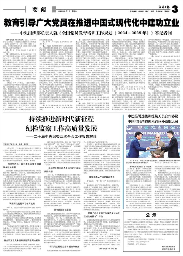 纪检监察工作高质量发展 ——二十届中央纪委四次全会工作报告解读 □新华社记者孙少龙 赖星 黄庆刚