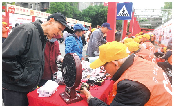 3月5日,在广西柳州市革新路“雷锋街市”,志愿者在为市民维修电器。