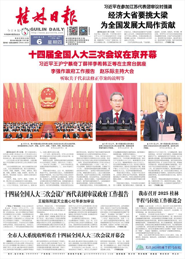 全市人大系统收听收看十四届全国人大三次会议开幕会   本报讯(记者陈娟)3月5日上午9时,第十四届全国人民代表大会第三次会议在北京人民大会堂隆重开幕。桂林市人大系统干部职工和人大代表,通过集中和自行收看等方式,收听收看开幕会盛况,认真聆听李强总理代表国务院向大会作的政府工作报告。大家一致认为,报告全面回顾了过去一年我国在经济发展、民生改善、社会稳定等各方面取得的显著成就,同时对新一年的工作进行了科学谋划和系统部署,鼓舞人心、催人奋进,要认真学习领会会议精神,立足岗位、锐意进取,为以中国式现代化全面推进强国建设、民族复兴伟业不懈奋斗!