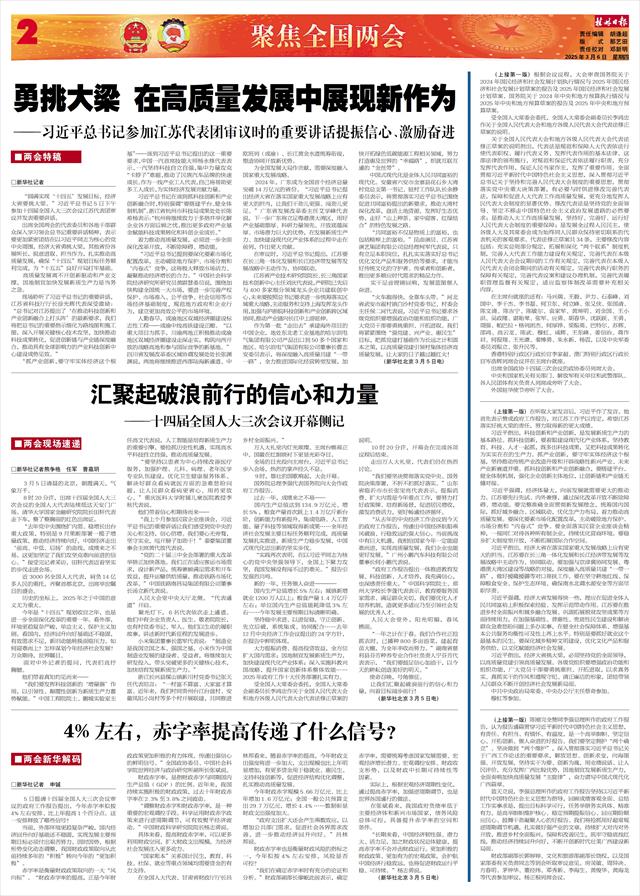 勇挑大梁 在高质量发展中展现新作为 ——习近平总书记参加江苏代表团审议时的重要讲话提振信心、激励奋进 □新华社记者