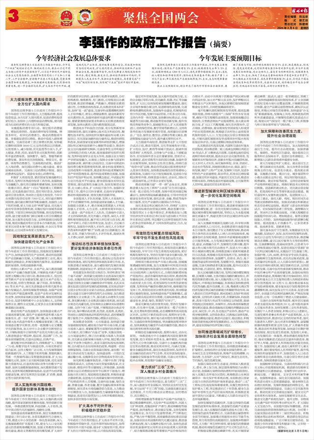 大力提振消费、提高投资效益,全方位扩大国内需求;因地制宜发展新质生产力,加快建设现代化产业体系;深入实施科教兴国战略,提升国家创新体系整体效能……2025年政府工作十大任务部署扎实有力。