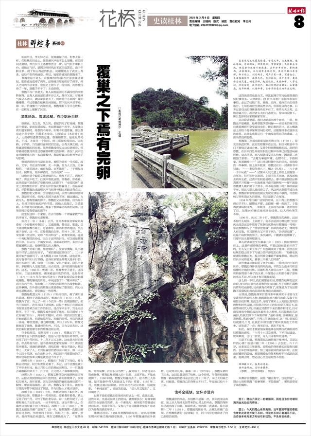 这件事情可能说明了两个问题:一是经过六七年的休养,蔡戡的身体状况有所改善,不然怎么敢来号称蛮俗瘴疠之地的桂林,还能和友人游玩山水?二是,蔡戡和韩侂胄那个圈子的关系,不像周必大和那个圈子那样的水火不容,所以他才有可能被起复。