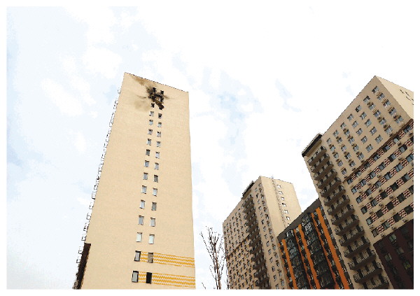 这是3月11日在俄罗斯莫斯科州南部萨普罗诺沃拍摄的受损住宅楼。