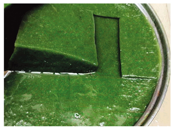 游完秘境大峡谷,我们来到附近的陈家村。村寨里,木楼依山势而建,黄墙黛瓦,古色古香。毛竹和灌木围绕村寨四周,溪流从村前淌过。村道虽不宽敞,却干净整洁。竹制晒楼上晾晒着小鱼干、笋干、香菇。陈家花瑶民宿坐落在最高处,是一座全木吊脚楼。楼下鸡群时而觅食,时而追逐。我们踩着木梯上楼,稍作休息,主人陈积伟便为我们备好了午餐。蕨菜、春笋、荠菜等时令蔬菜满足了我们的味蕾。一种不知名的美食,颜色碧绿,入口滑爽,散发着植物清香。主人告诉我们这是“神仙豆腐”。我们对此菜颇感兴趣,主人便热心地教我们制作。他采摘了后山的斑鸠树叶,把翠绿的小叶子洗净,放在盆子里,然后用手揉搓。文友小云迫不及待地想要尝试,主人就交由她捣鼓,只在一旁指点。没多久,小云就揉搓出黏稠的绿浆来,用纱布过滤备用。火塘里的草木灰,铲一把放碗里,经清水沉淀,然后慢慢地倒出上面一层水,再把这些水倒入过滤好的绿浆里,迅速搅拌,放置约半小时,就凝固成豆腐了。切成方块,在开水里煮熟,捞起,沥干。主人告诉我们几种吃法:加红辣椒、葱、姜、蒜等佐料,做成凉拌菜,可加入白糖做成零食,可烫火锅。“神仙豆腐”能清热解毒,是当地招待贵宾的美食,珍贵难得。三月三,游客络绎不绝,主人仍不厌其烦地教我们制作,瑶民的热情与善良可见一斑。