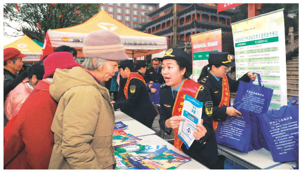 上午9时30分,凤山公园广场人头攒动。记者在现场看到,该县市场监督管理局的工作人员正向过往群众普及《消费者权益保护法》以及“人工智能+消费”的相关知识。县烟草专卖局的工作人员则在现场演示假烟辨别技巧,通过对比真烟的包装印刷工艺、防伪标识等细节,提醒消费者掌握“一看二摸三查”的辨别方法。县消防救援大队宣传员通过展示假冒灭火器、应急灯等产品,现场传授辨别技巧。县消费者权益保护委员会的其他成员单位也纷纷通过设置宣传展板、发放维权手册、现场接受咨询等方式开展宣传活动。